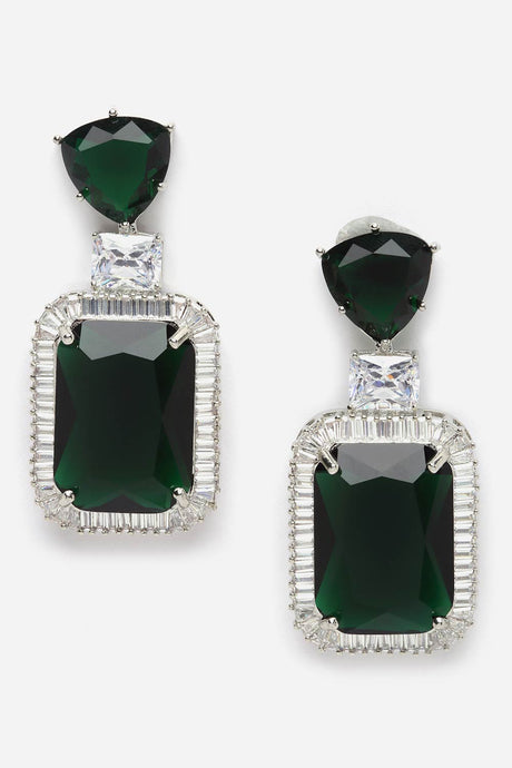 Green And Silver Drop Earring With American Diamonds And Natural Stones