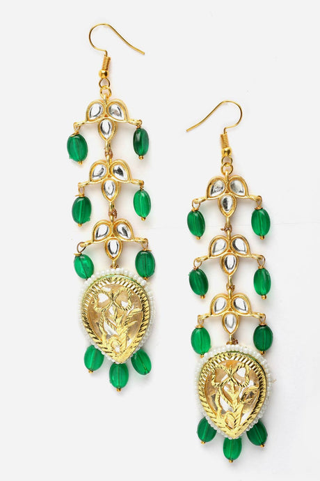 Grey And Green Drop Earring With Kundan And American Diamonds