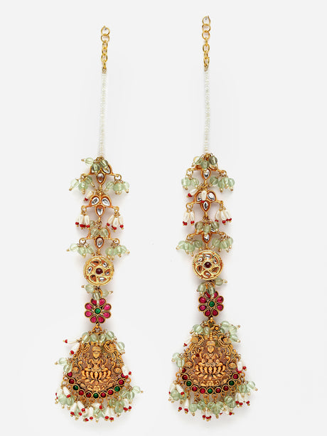Green And Brown Gold-Plated Kundan And Pearls Drop Earring