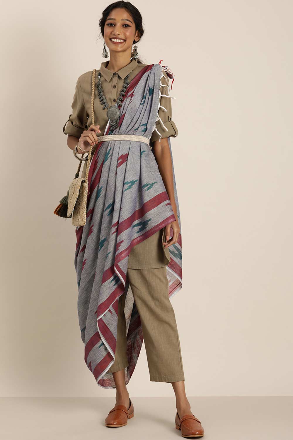 Blue Silk Blend Bhagalpuri Ikat Causal Dupatta