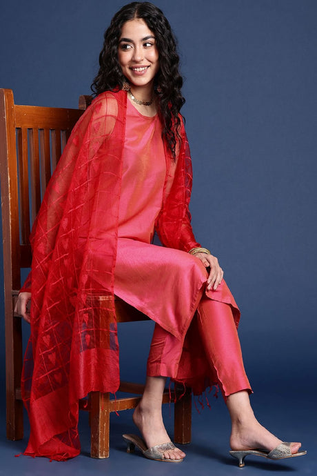 Magenta Silk Blend Bhagalpuri Handloom Causal Dupatta