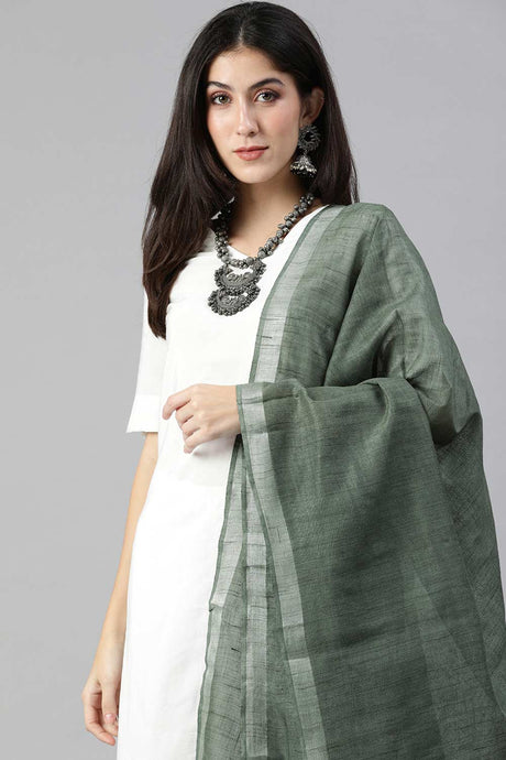 Olive Silk Blend Bhagalpuri Handloom Causal Dupatta