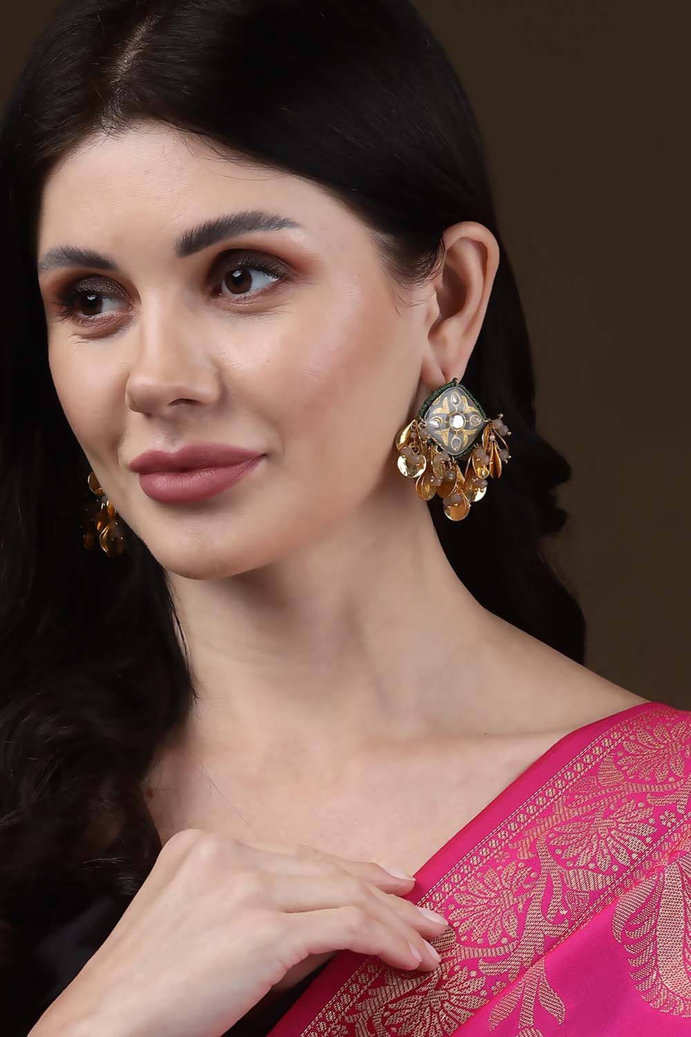 Upgrade your outfit with our Earring a dazzling pair of earrings designed to make a statement. Crafted from Alloy and adorned with Kundan, Pearls, Natural Stones, Faux Emerald these earrings are perfect for Partywear. Lightweight and versatile, they complement both traditional and modern outfits. Pair them with a matching necklace or wear them solo for effortless glamour
