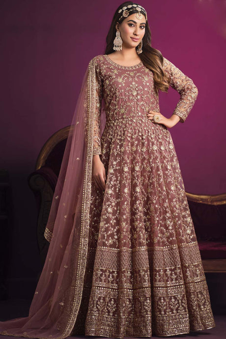 Brown Georgette Embroidered Pakistani Suit
