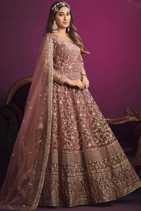 Light Pink Net Embroidered Gown
