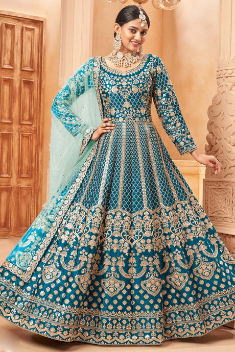Rama Embroidered Georgette Anarkali Suit Set