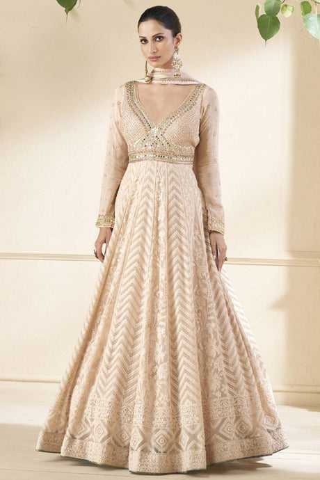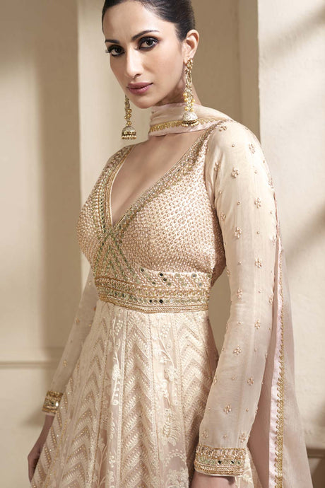 Beige Georgette Embroidered Pakistani Suit