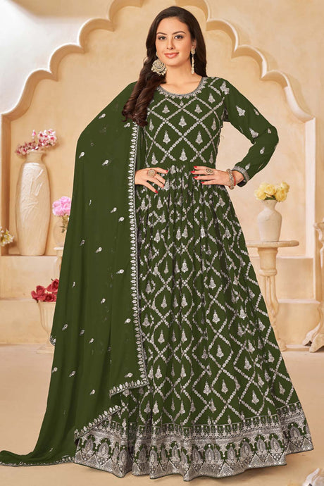 Green Georgette Embroidered Pakistani Suit