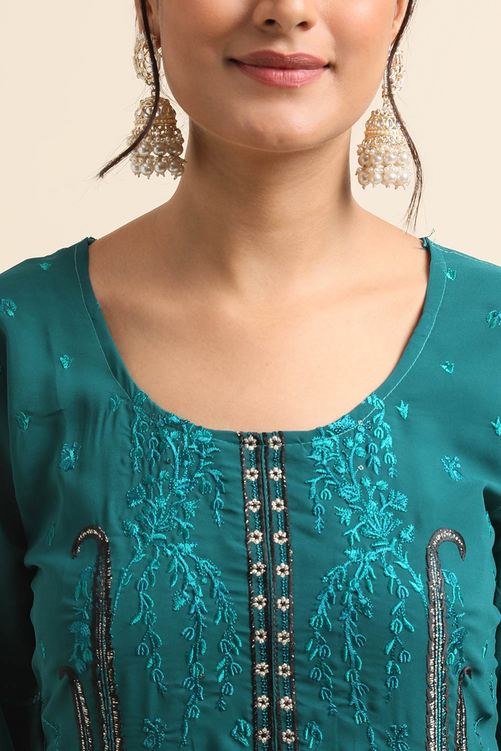 Teal Green Faux Georgette Pakistani Suit