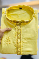 Yellow Embroidered Silk Kurta Pajama Set