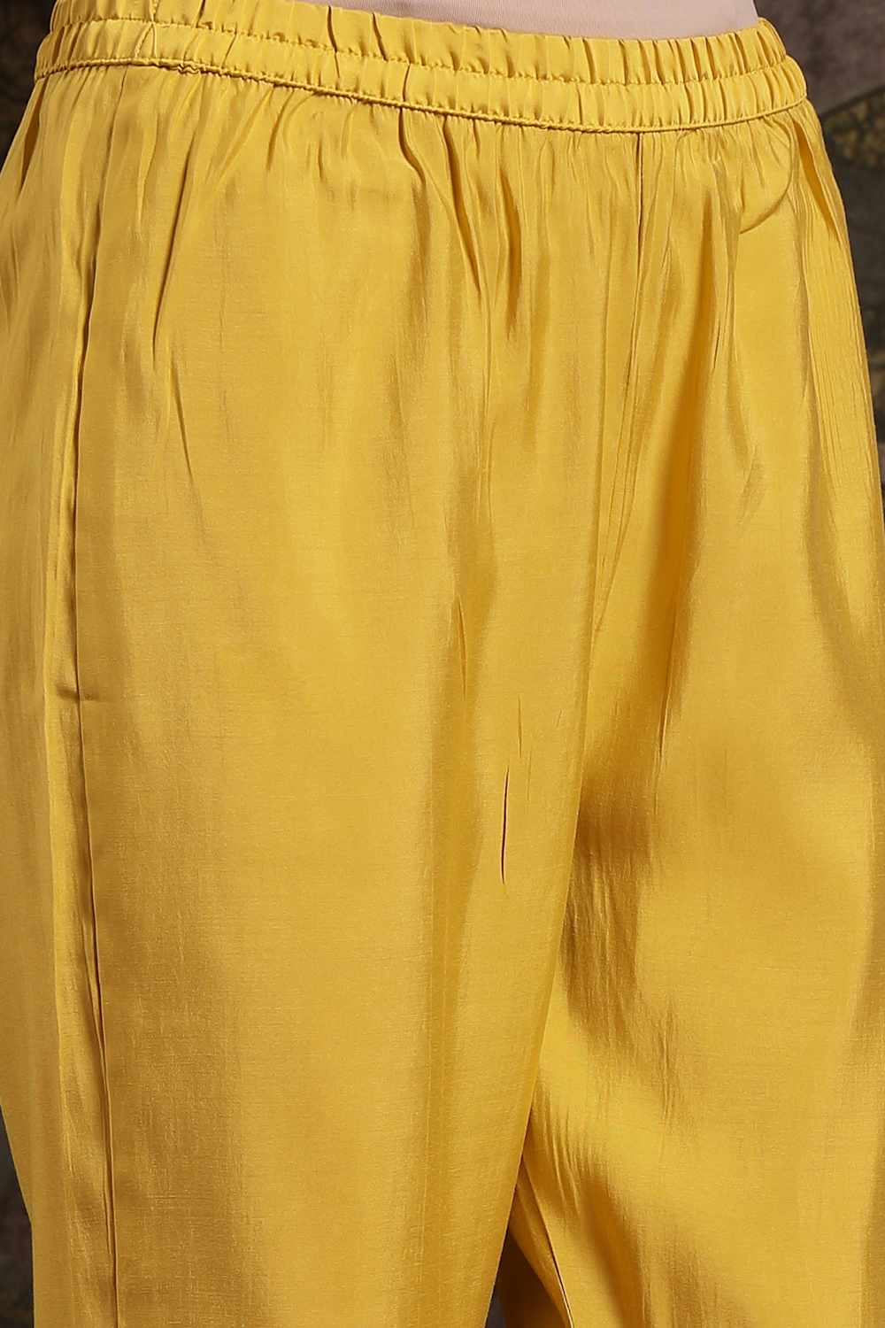Yellow Embroidery Chanderi Silk Kurti Pant Set
