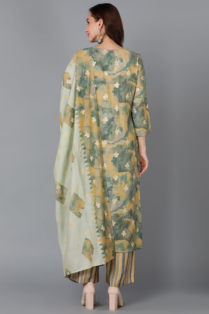 Yellow Silk Blend Straight Kurti Palazzo With Dupatta