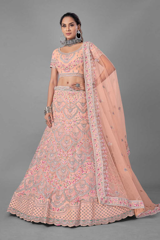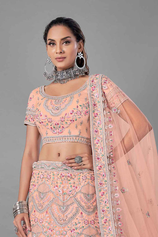 Pink Soft Net Embroidered Lehenga Choli