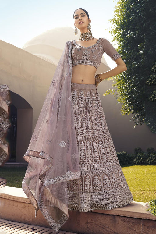 Pink Net Embroidered Lehenga Choli With Dupatta