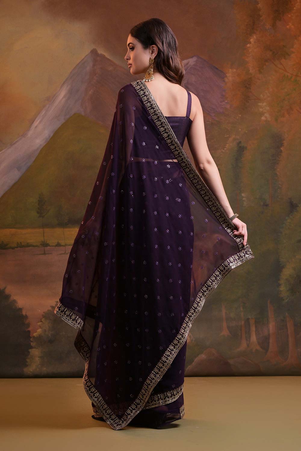 Purple Georgette Embroidered Saree
