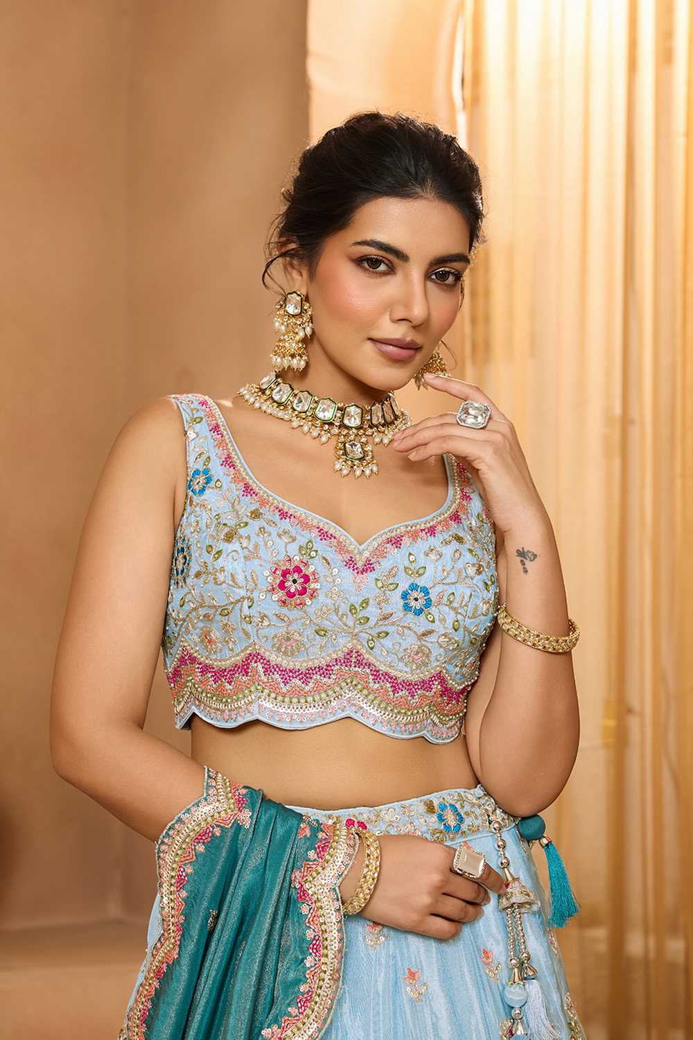 Step into the spotlight with our Lehenga a dazzling creation designed to make your special moments unforgettable. Crafted from premium Tissue this lehenga offers a perfect combination of elegance and ease, keeping you graceful all day long. The exquisite Floral Embroidered makes this lehenga a masterpiece of traditional craftsmanship. Whether it’s Sangeet,Mehendi,Festive,Party,Engagement,Reception or a grand celebration, this lehenga is the perfect choice to make a statement. Pair it with an ornate choker, a matching dupatta, and embellished stilettos to complete the regal look. Add a sleek bun or cascading curls for added glamour. Make every moment magical with the timeless allure of Lehenga
