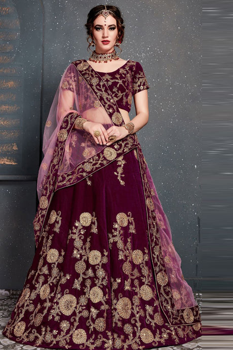 Sale price $289.00 USD Regular price $361.00Unit price /UnavailableVelvet Embroidered Lehenga Choli In Purple