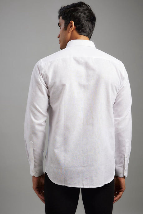 Men's White Cotton Solid Shirt