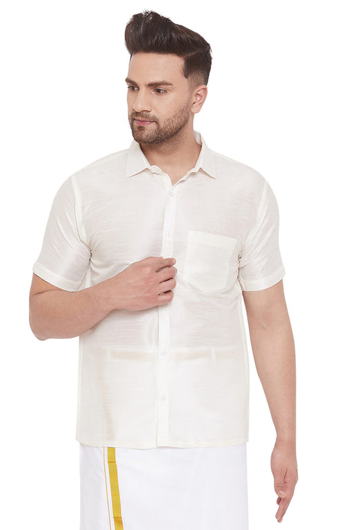 Men's Cotton Silk Blend Solid Shirt In White