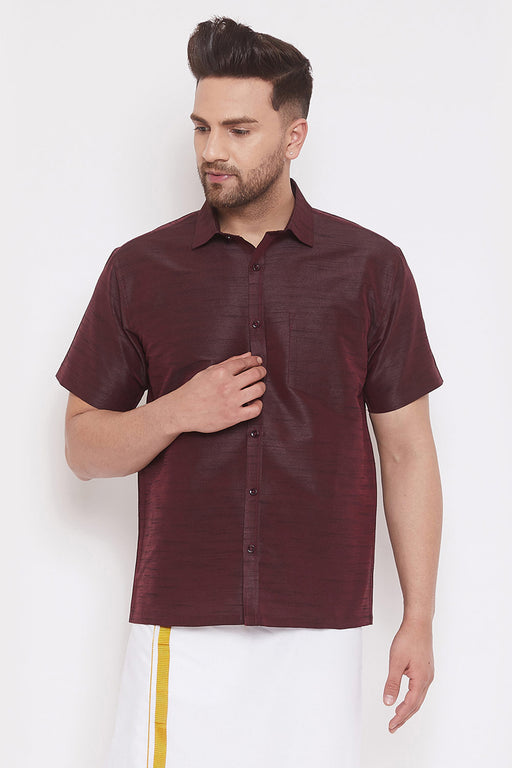 Men's Cotton Art Silk Solid Ethnic Shirt In Maroon