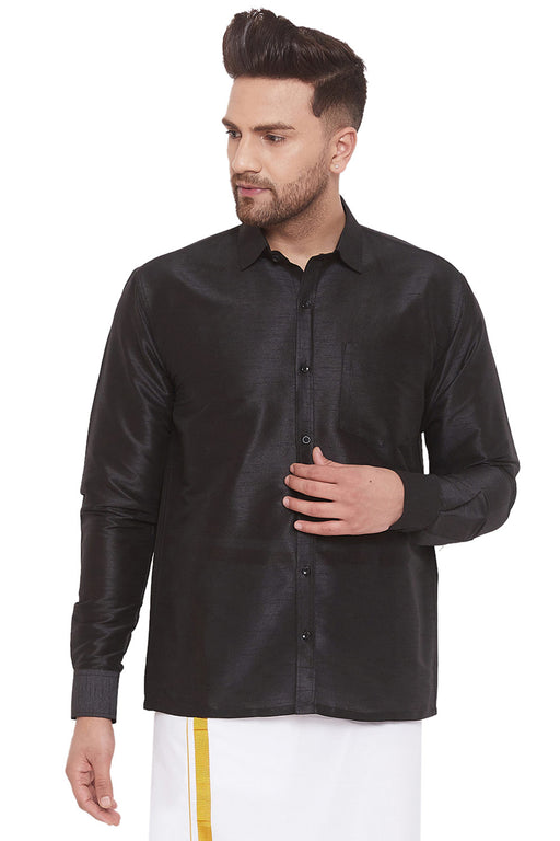Men's Cotton Art Silk Solid Ethnic Shirt In Black
