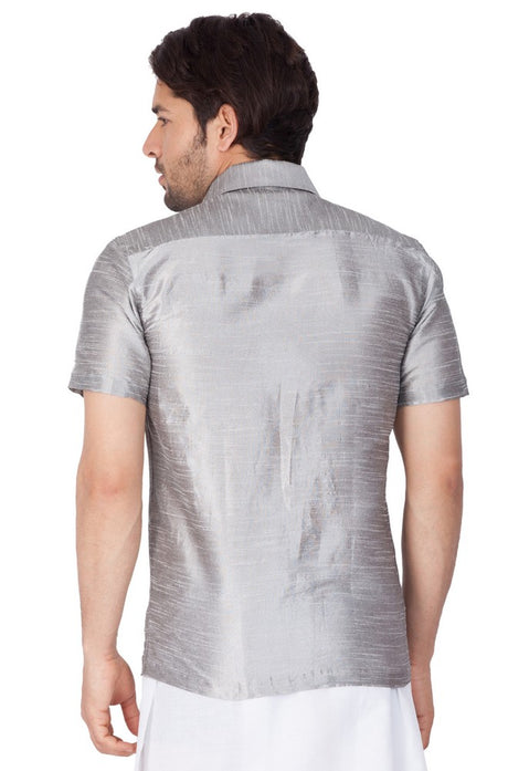 Men's Cotton Art Silk Solid Ethnic Shirt In Grey