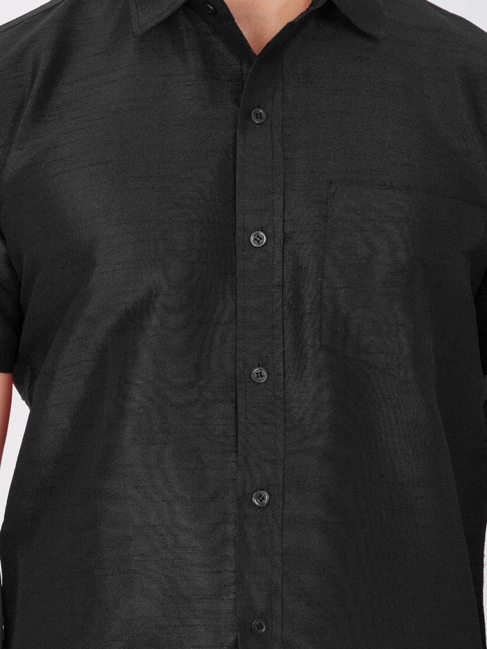 Men's Cotton Art Silk Solid Ethnic Shirt In Black