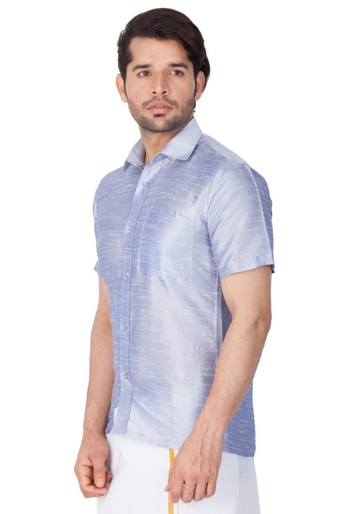 Men's Cotton Art Silk Solid Ethnic Shirt In Light Blue