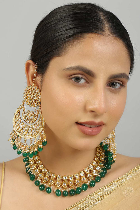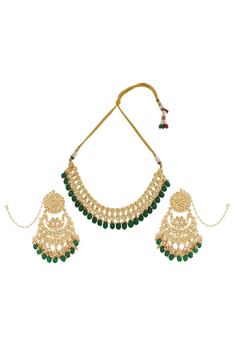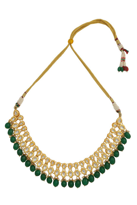 Gold Toned Kundan Necklace With Pair Of Earrings