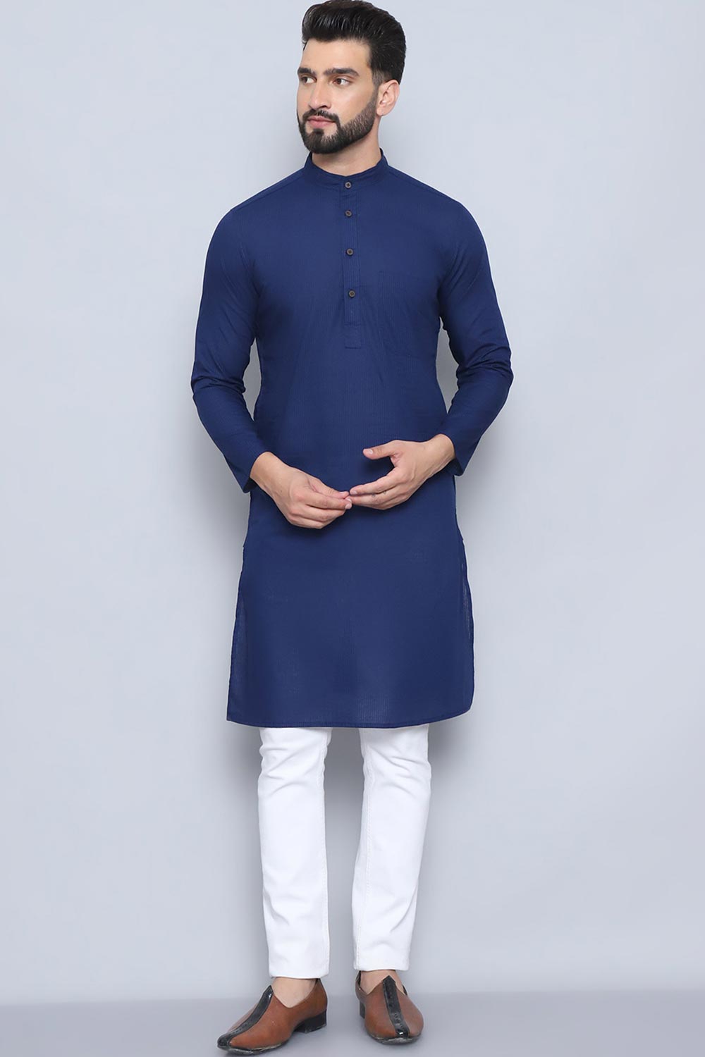 This stylish blue cotton solid long kurta offers a blend of elegance and comfort. Its rich blue hue and classic design make it a versatile piece for a range of occasions, from casual outings to more formal events.