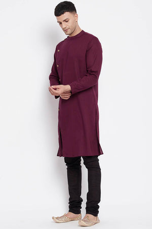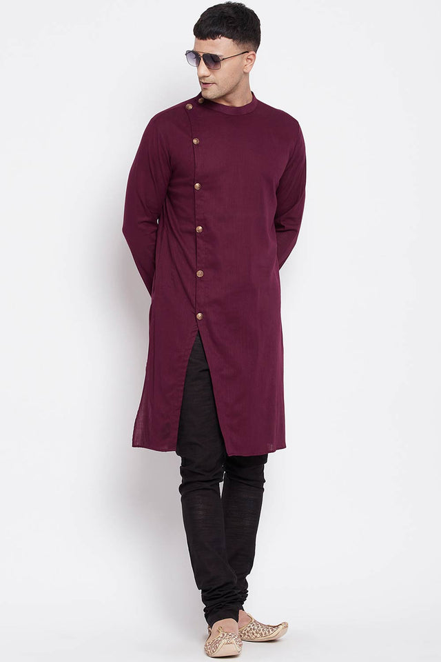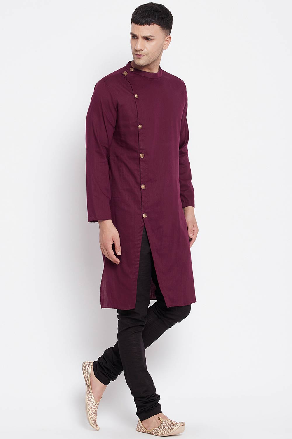 Men's Pure Cotton Solid Sherwani Top Kurta Top In Maroon