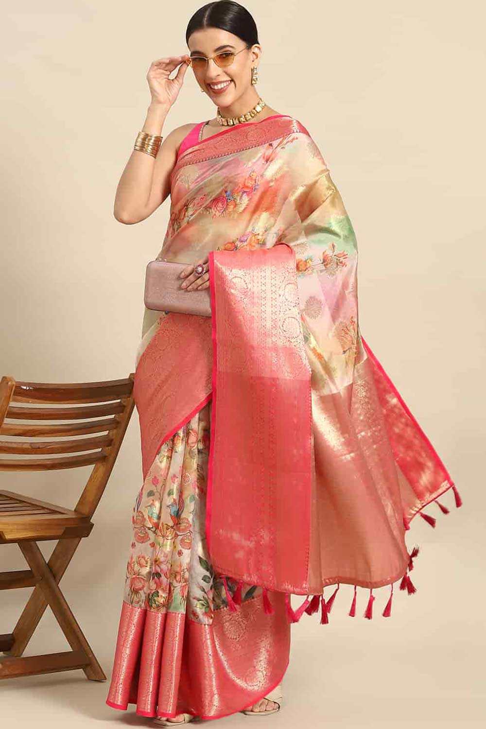 Multicolor Soft Art Silk Floral Printed Banarasi Saree