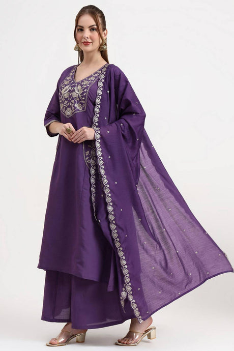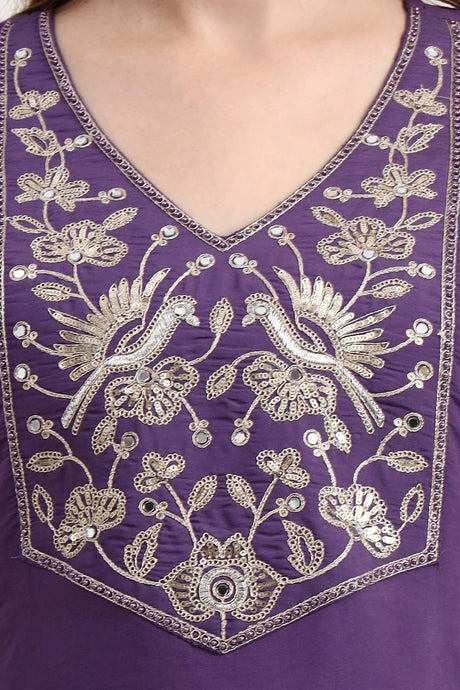 Violet Sequin with Embroidered Georgette Sharara Suit Set