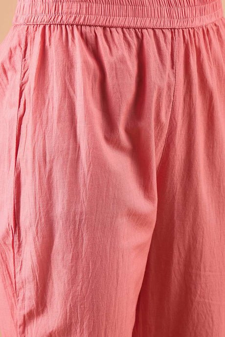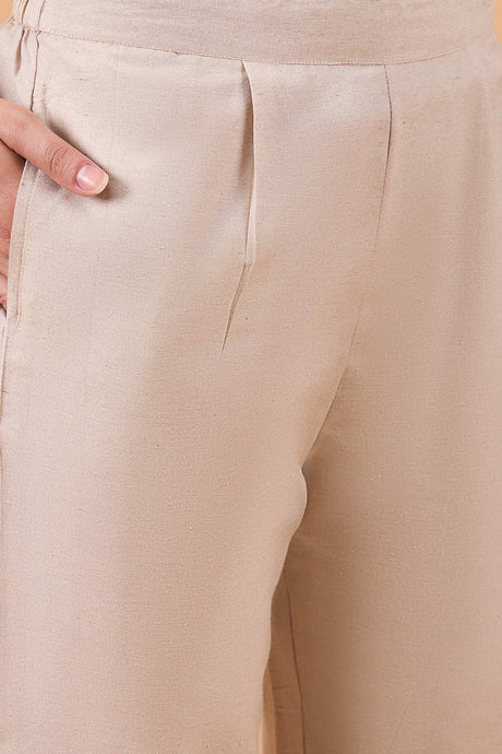 Women's Peach Silk Blend Printed Kurti Pant Set