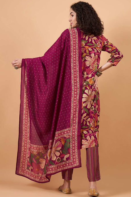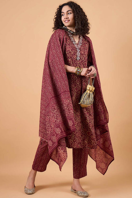Maroon Embroidered Chanderi Anarkali Suit Set