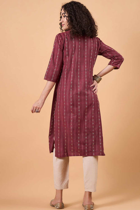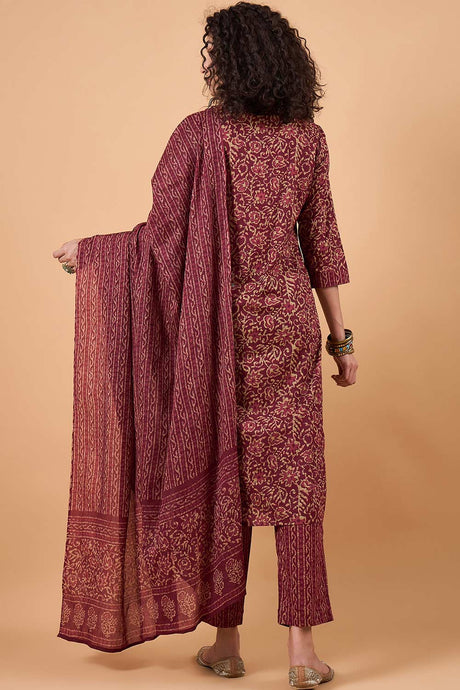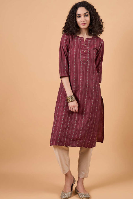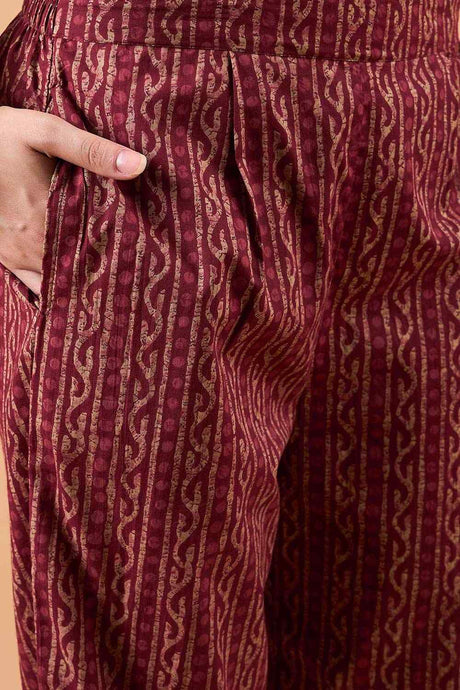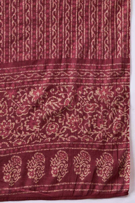 Women's Maroon Silk Blend Printed Kurti Pant Set