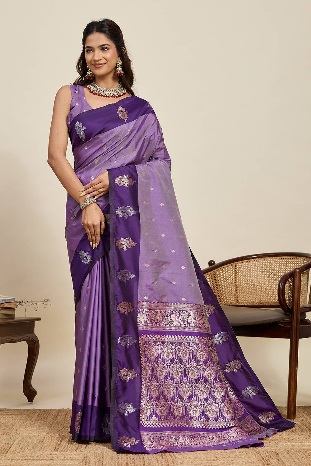 Lavender Woven Silk Saree