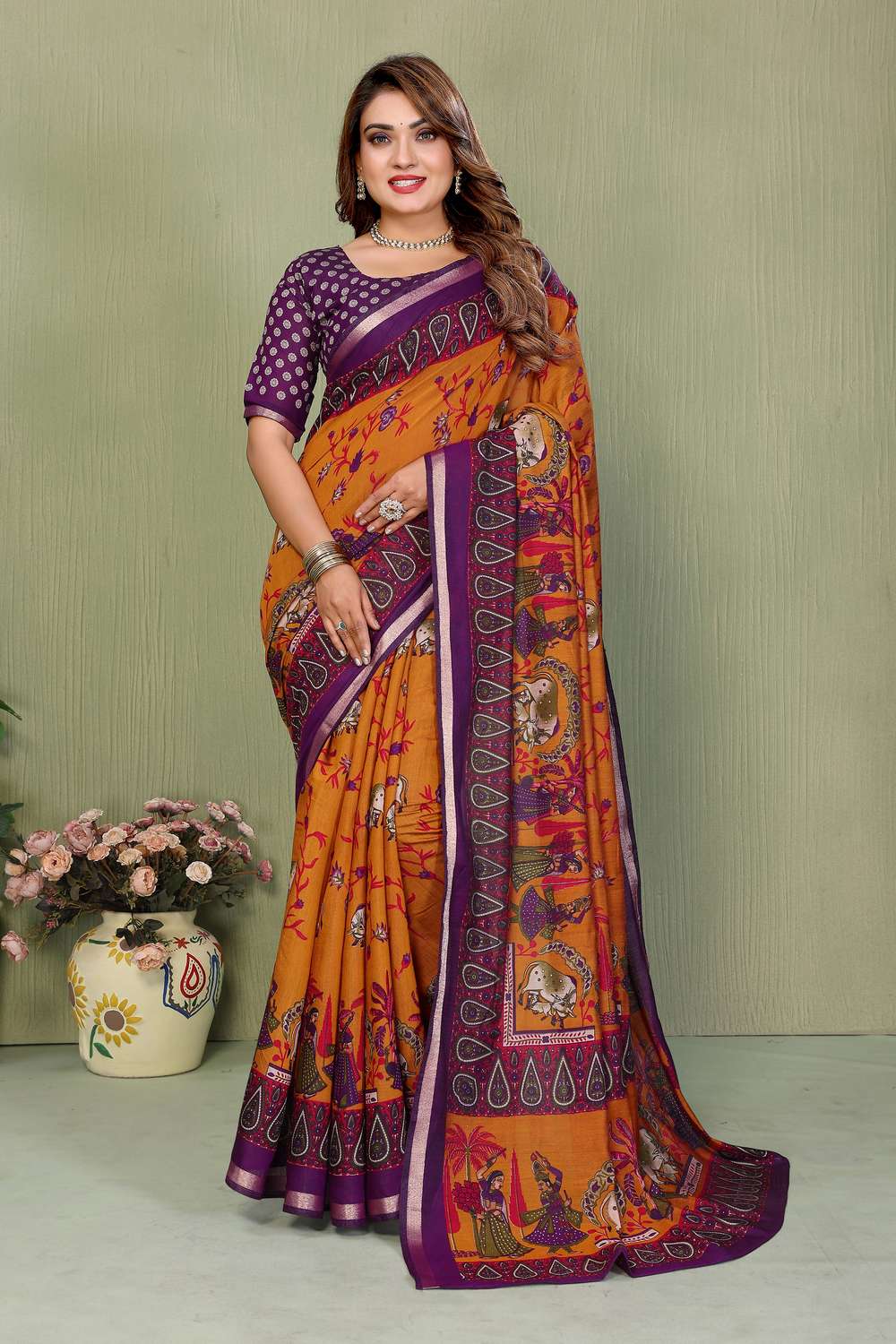 Elevate your wardrobe with our exquisite Saree a masterpiece crafted to add timeless elegance to your style. Made from Cotton this saree offers a perfect mix of comfort and sophistication. Adorned with Kalamkari Printed it showcases intricate craftsmanship that speaks volumes of tradition and artistry. Perfect for occasion-festivewear this saree is a versatile addition to your collection, ensuring you stand out effortlessly. Pair it with elegant Jewelry, for a glamorous look. Add Clutches or Potli Bags and complete the ensemble with Wedges & Heels , making it a perfect choice for any event. Make a statement and embrace the elegance of Saree today