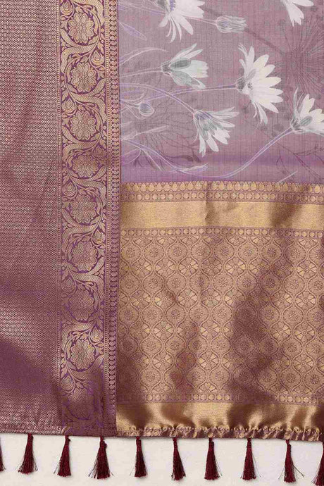 Lavender Munga Silk Floral Saree