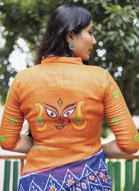 Blue Linen Digital Printed Saree