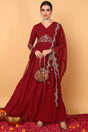 Red Georgette Embroidered Zari Work Flared Kurti Set