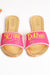 Fuscgia Pink Sliders with yellow beads Pataka Dulhan Text and Pearl trim.