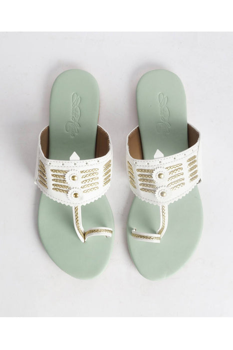Soft Faux Leather Kolhapuri Flats In Sea Green