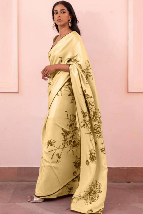 Sale price $53.00 USD Regular price $58.00Unit price /UnavailableCream Floral Printed Satin Saree