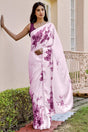 Light Pink Floral Printed Satin Saree