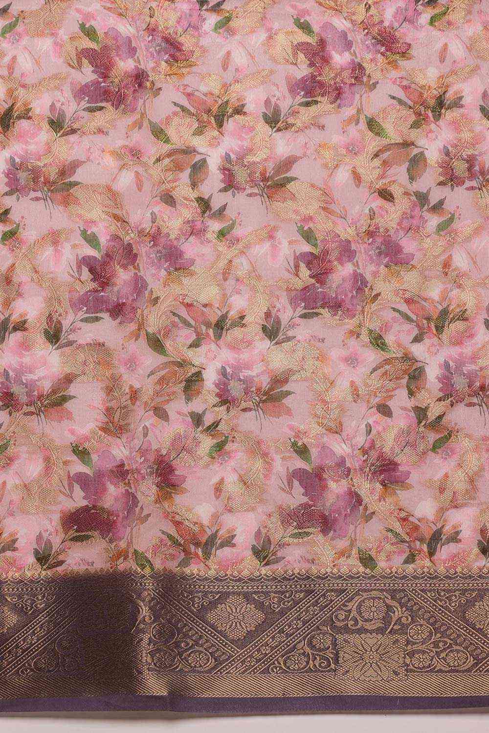 Pink Cotton Digital Print Banarasi Saree