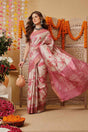 Pink Floral Printed Silk Saree