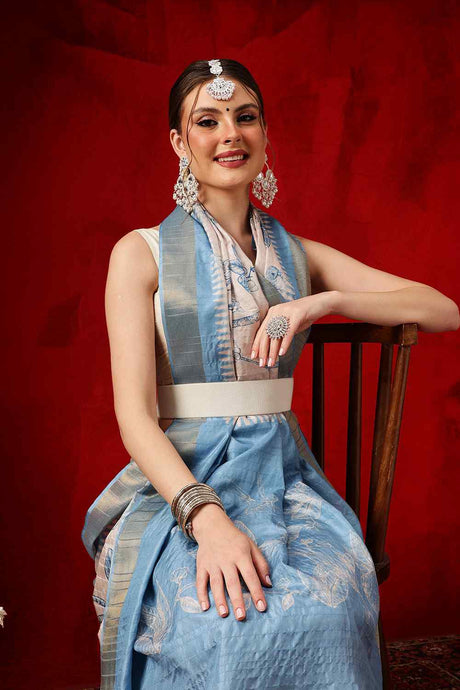 Sale price $169.00 USD Regular price $211.00Unit price /UnavailableGrey Floral Embroidered Tissue Saree