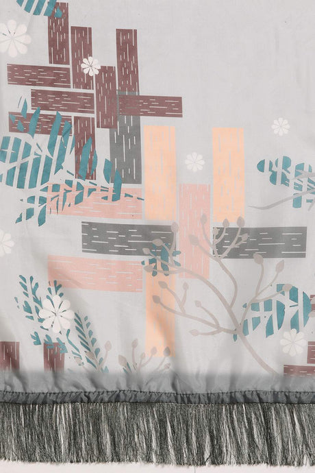 Grey Floral Printed Silk Saree