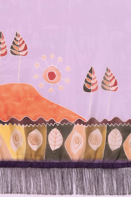 Lavender Floral Printed Silk Saree